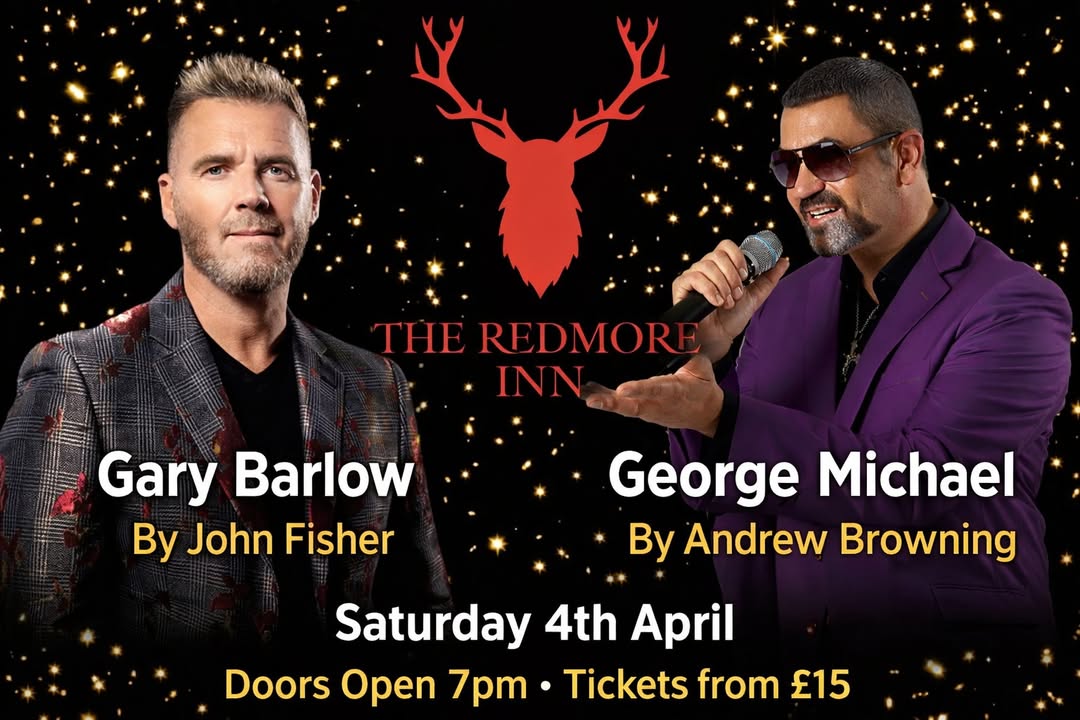 🎶 🎤 WAKE ME UP… before you miss this night! 🎤 🎶 📅 Saturday 4th April 📍 The Redmore Inn 🕖 Doors open 7pm Get ready for a POP-TASTIC Tribute Night featuring: ⭐ Gary Barlow by John Fisher ⭐ George Michael by Andrew Browning 🎶 Faith, Freedom, Back For Good & all the BIG sing-along moments 🎶 🎟️ Pick your pop-star package: 💥 STANDARD – Entry to the show 🎶 🥂 PREMIUM – Standard + Prosecco or Beer 🍾🍺 🍔 ULTRA PREMIUM – Premium + FOOD (because legends need fuel) 😎 👉 Burger & Chips or Chicken Bites & Chips ✨ Big voices ✨ Bigger hits ✨ A Saturday night you’ll be talking about on Monday ⚠️ PLEASE NOTE: 🎟️ Tickets are non-refundable and non-transferable 👯♂️ Large bookings must be booked together to guarantee seating together 🎶 Don’t leave it hanging like a Careless Whisper… 🎟️ Get your tickets now! #PopNight #TributeVibes #GaryBarlowTribute #GeorgeMichaelTribute #RedmoreInn #SaturdayNightFun #SingItLoud 💃🕺 Tickets can be purchased form our bar or directly from our dedicated ticket store, https://redmorerocksevents.sumupstore.com/product/gary-barlow-and-george-michael-at-the-redmore-saturday-4th-april.